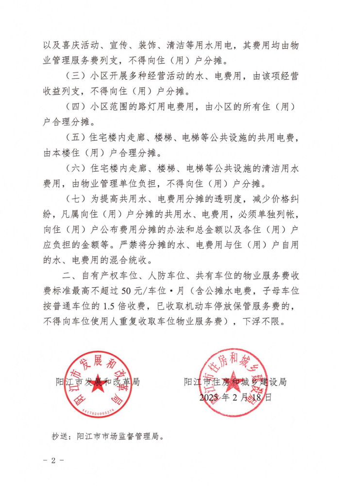 一、住宅小区物业服务收费中的共用水电费分摊按如下规定执行。